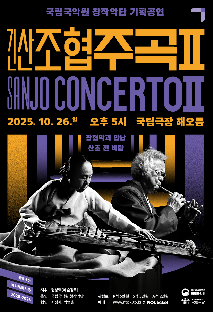 The National Gugak Center’s Creative Orchestra presents “Concerto for Extended Sanjo,” a reinterpretation of master musicians’ sanjo works in collaboration with orchestra. Park Beomhun’s Piri Sanjo and Seong Geumyeon’s Gayageum Sanjo are reborn as concertos, offering a moment where tradition and innovation meet, and an experience that expands the depth and resonance of Sanjo.