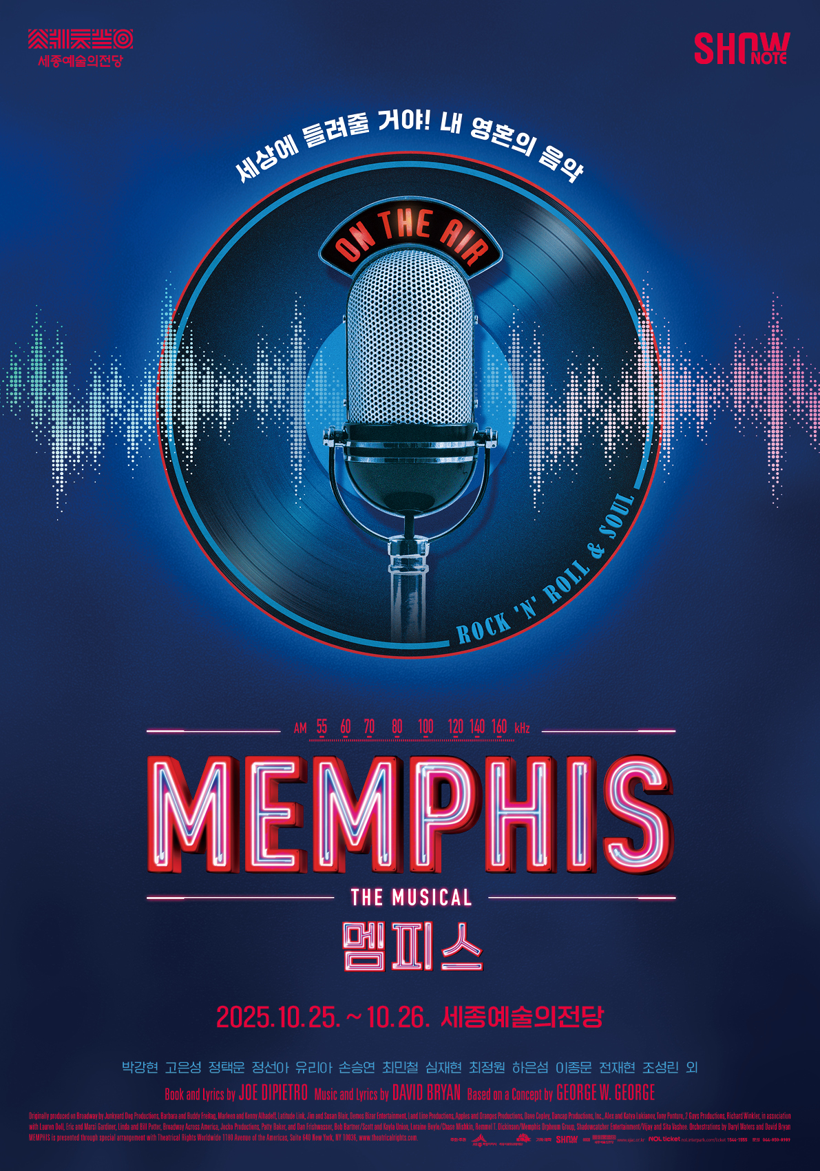 차별과 갈등이 만연했던 1950년대 미국 남부 멤피스. ‘흑인 음악’으로 치부되던 로큰롤에 매료된 백인 청년 휴이는 우연히 클럽에서 만난 펠리샤의 노래에 감동해 그녀의 음악을 세상에 전하려 한다. 그는 DJ로 로큰롤을 전파하며 큰 반향을 일으키지만, 사랑과 꿈은 현실의 벽에 부딪힌다. 편견을 넘어선 음악과 사랑, 로큰롤의 탄생기를 담은 드라마가 무대 위에 펼쳐진다.