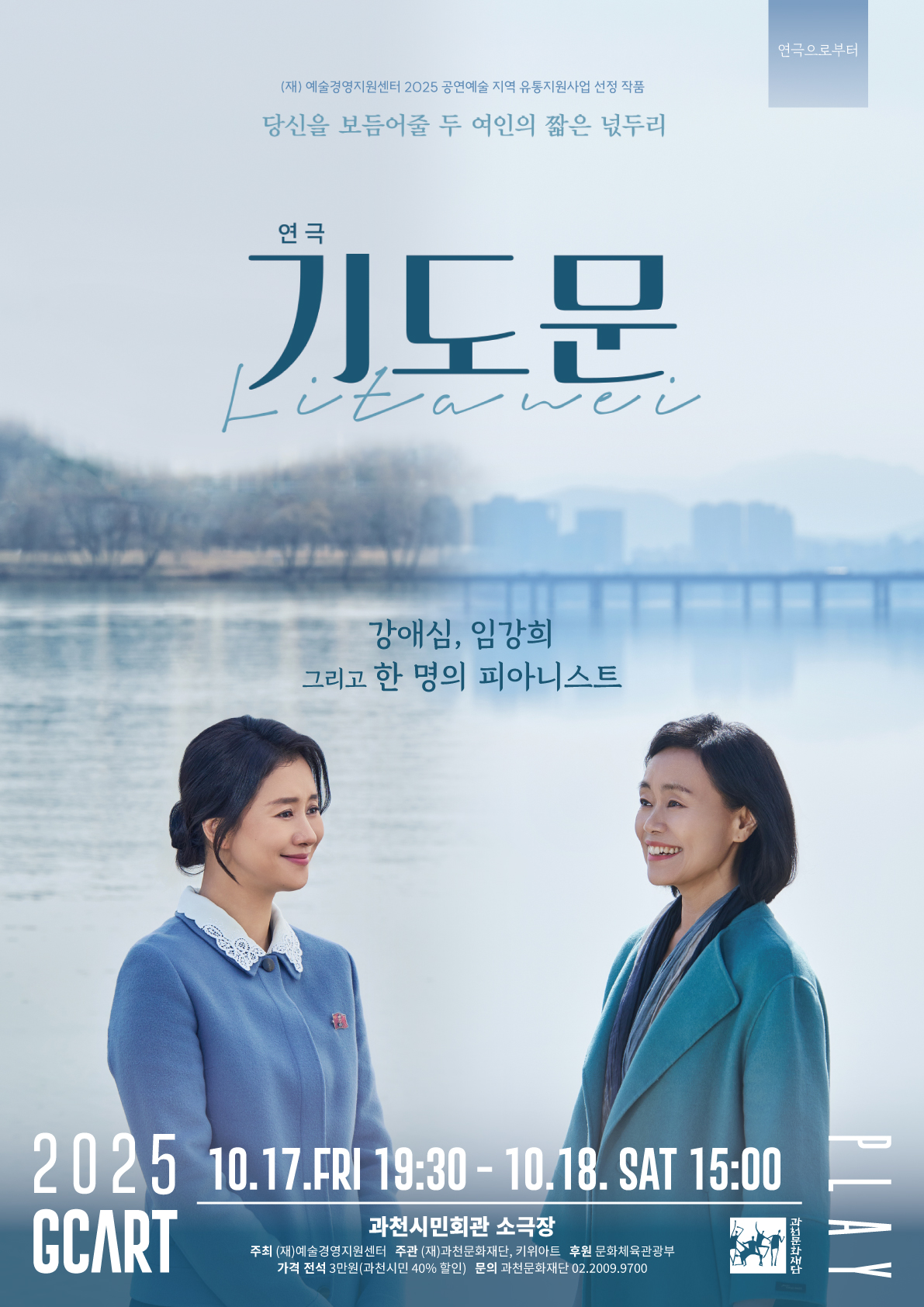 연극 〈기도문〉은 참혹한 참사로 자녀를 잃은 남과 북, 두 어머니의 이야기를 강렬하게 풀어낸 2인극이다. 넷플릭스 〈오징어게임2·3〉의 강애심과 연극 〈02:22〉, 〈대학살의 신〉의 임강희가 출연해 각각 남과 북의 여인을 연기한다. 여기에 블라인드 오디션으로 발탁된 여성 피아니스트가 함께해, 섬세한 연주와 두 배우의 밀도 높은 연기 호흡이 어우러진 감동의 무대를 완성한다.